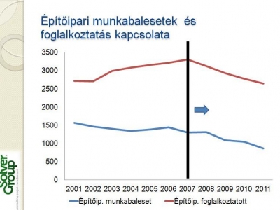 A foglalkoztatási adatok és a munkabaleseti adatok változása az építőiparban 2002-2011. év között Az építőipari foglalkoztatottság és a munkabalesetek számának közti összefüggés