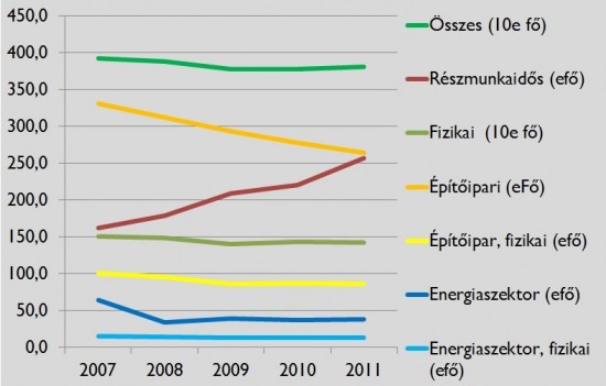 A foglalkoztatás szerkezetei trendjei közül a kockázatosság megítélése szempontjából két érdekes elemet érdemes kiemelnünk: