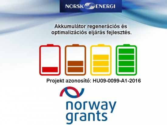 Az Solver Unio Kft. a Norvég Finanszírozási Mechanizmus „Zöld ipari innováció” programjában pályázatával támogatást nyert az „Akkumulátorregenerációs és -optimalizációs eljárás fejlesztése” című fejlesztési projektjéhez, amely fejlesztés a HU09-0099-A1-2016 azonosítószámú támogatási szerződésben foglaltak szerint 2016. május 1. és 2017. április 30. között kerül megvalósításra.